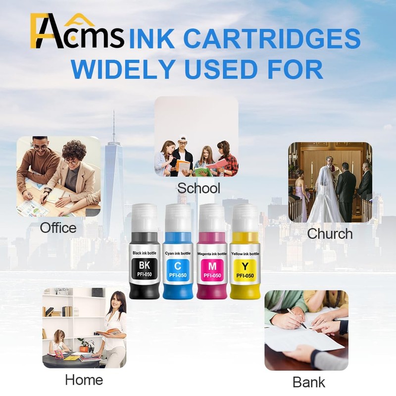 - High Performance: FAcms replacement for Canon ink bottle PFI-050 select the best ink and the most compatible chip to ensure ink cartridge can perfect work with your printer, have ISO9001 certification.