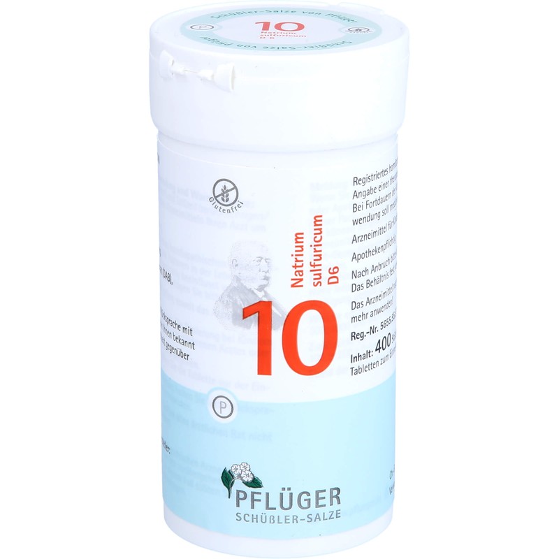 Biochemie Pflüger Nr. 10 Natrium sulfuricum D6. Wirkstoff: Natrium sulfuricum Trit. D6. Anwendungsgebiet: Registriertes homöopathisches Arzneimittel, daher ohne Angabe einer therapeutischen Indikation. Warnhinweis: Enthält Lactose.