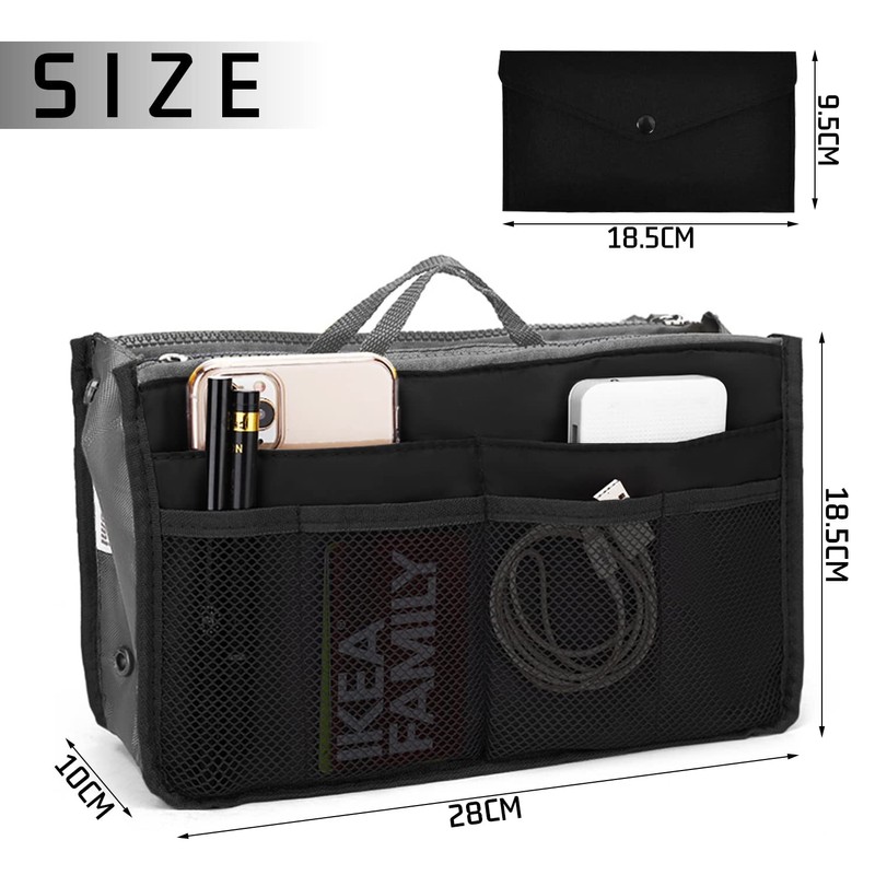 - Package contents: you will receive 1 black bag in a bag, the size is 28 x 18.5 x 10 cm and the weight is approx. 180 grams. There is also a black felt wallet. Meet your daily organization or storage needs.