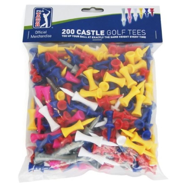 PGA Tour 200 Castle Golf Tees - Red/Yellow/Blue/Pink/Gray