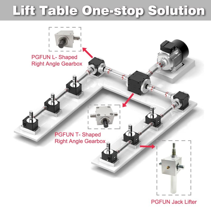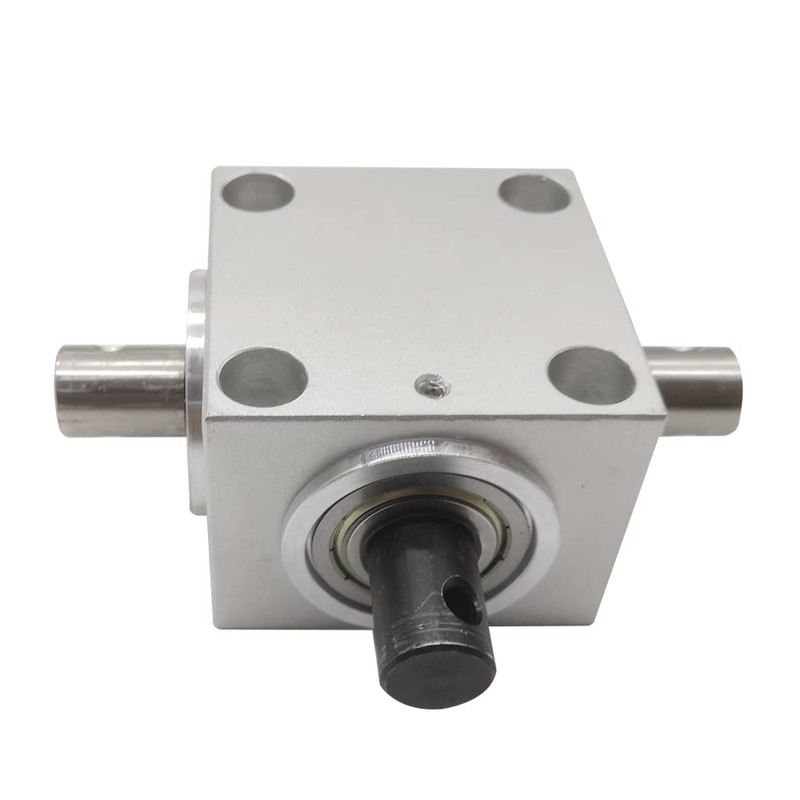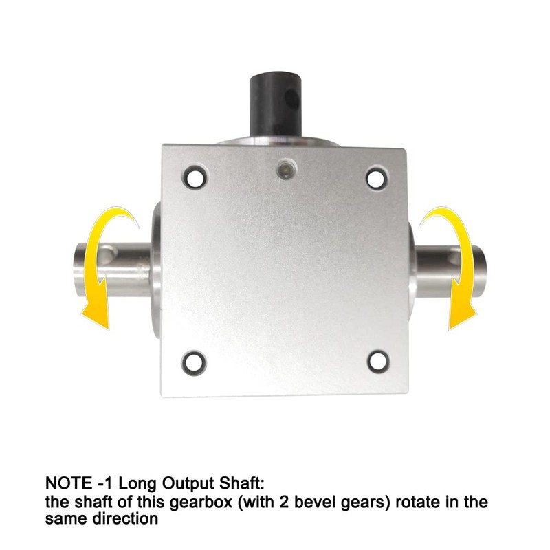 - 1:1 T-shaped Right Angle Bevel Gearbox for DIY and Simple CNC Mechanical Application, 1 Input Shaft Drives 2 Co-rotating Output Shaft.