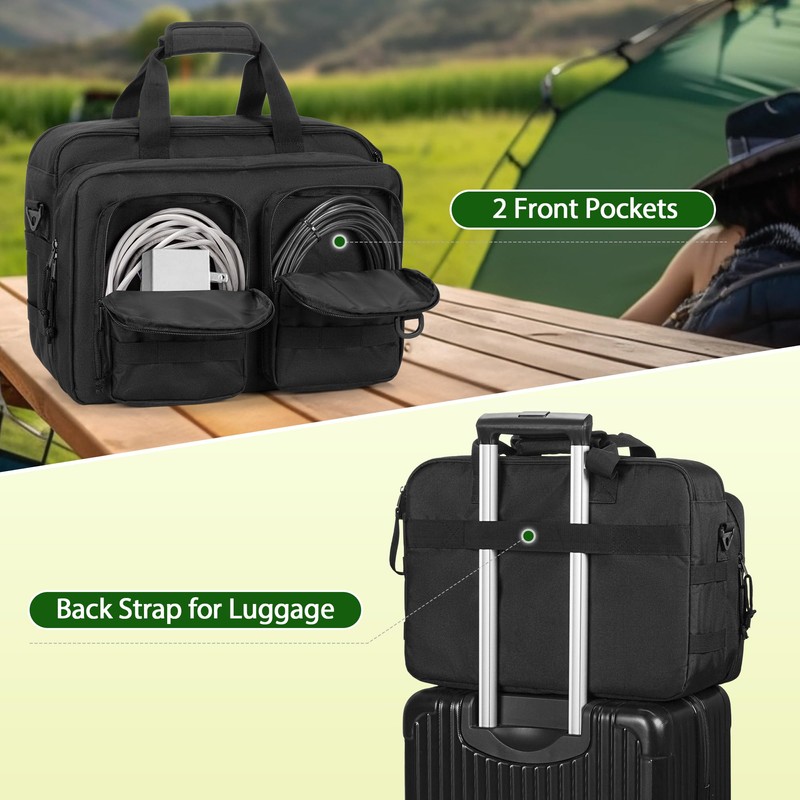 - Large Capacity: The main compartment features spacious space for Starlink Mini dish and cables; The front compartment has 2 padded pockets, 1 padded sleeve and 3 elastic bands, which is easy to keep kickstand, pipe adapter, power supply, 15.6’’ laptop; 2 front rectangular pockets can store cables