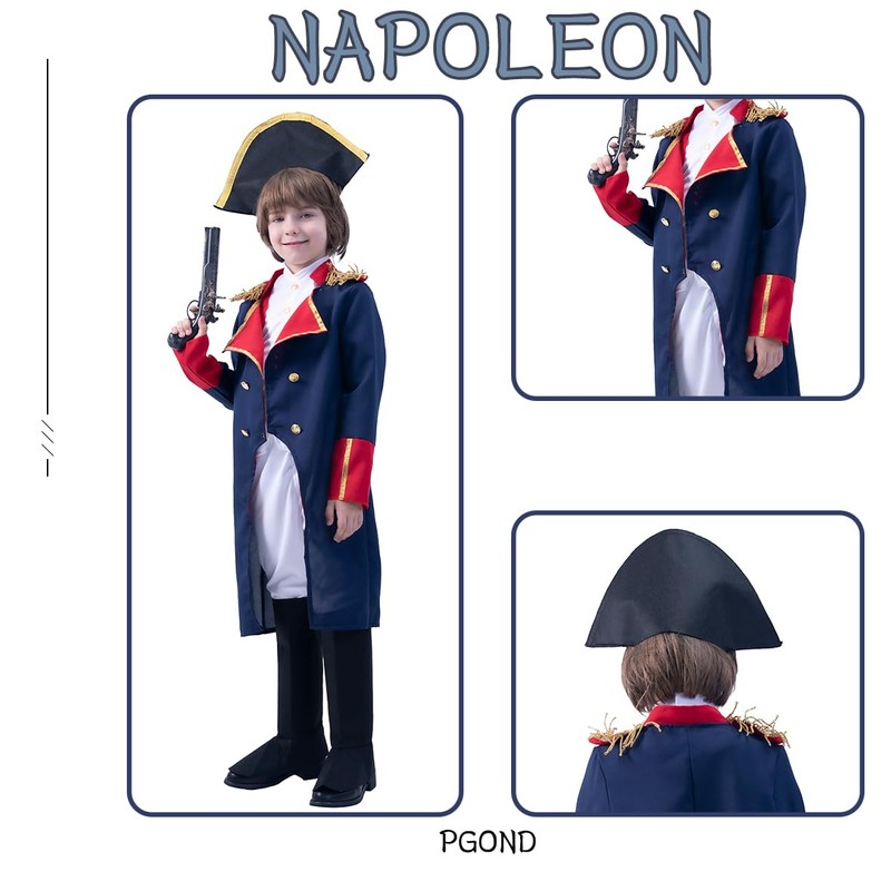 - Boy's Napoleon French Emperor Costume includes Hat,Top,Jacket,Pants,Boot covers