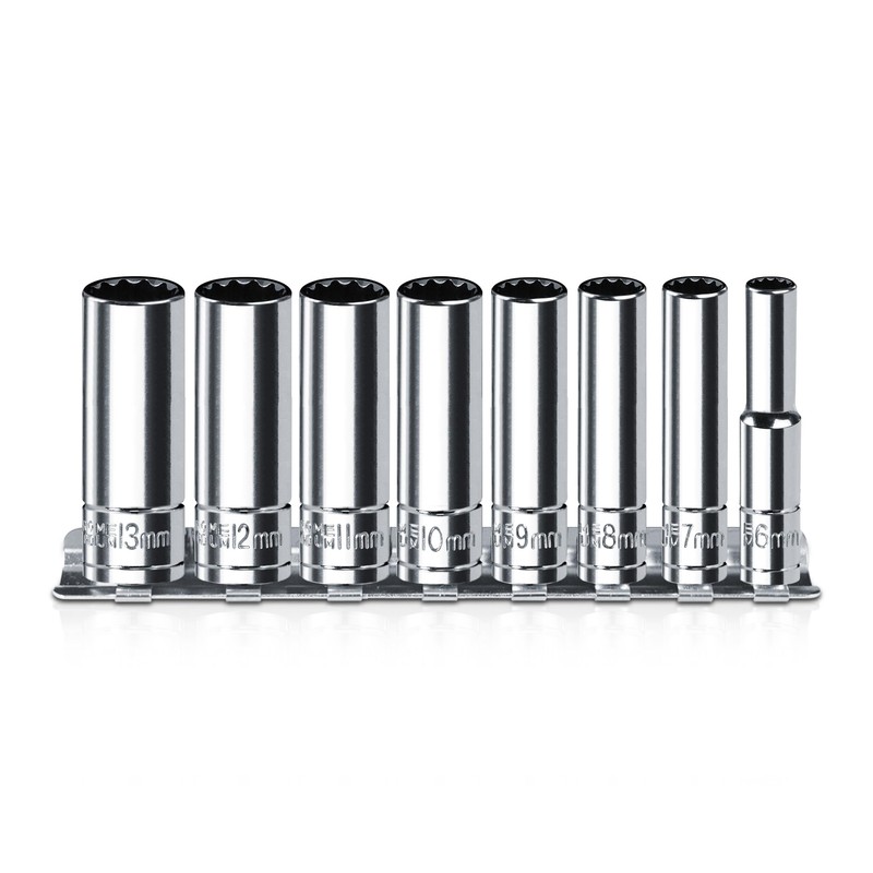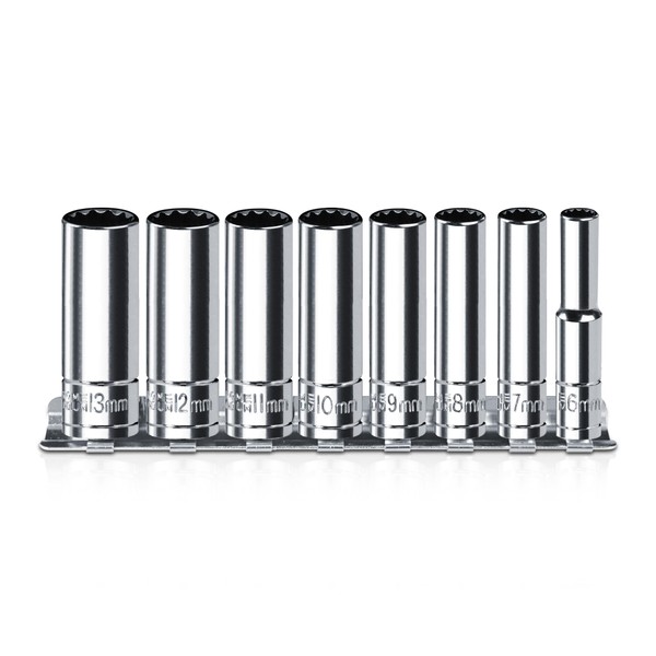 PGROUP Long 12-Point 12-Point Multi-Tooth Socket Spanner Spanner Socket 1/4 Inch Double Hexagonal/Double Hexagon, 8 Pieces Metric 6-13 mm, Chrome Vanadium Steel