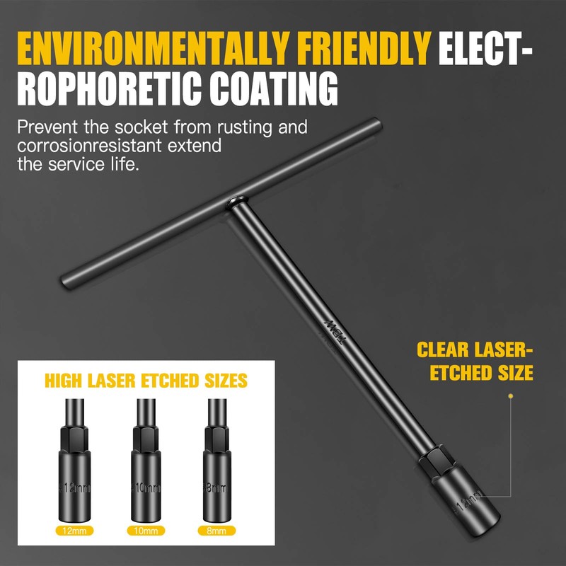 • RUST-FREE: T-type socket wrenches are treated with electroplated bright mesh, not easy to rust, and can be well preserved