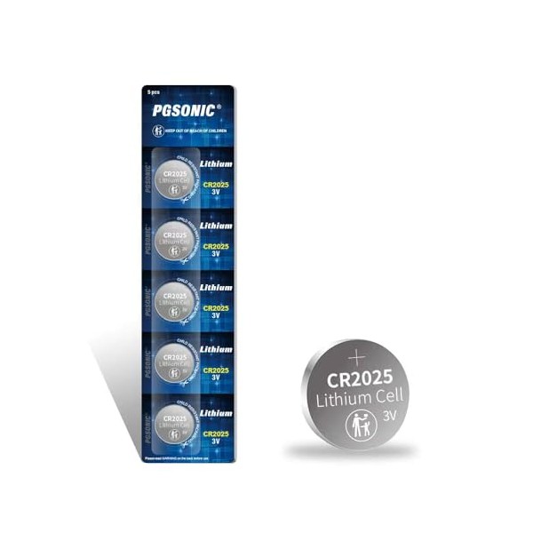 - What You Get: 5pcs CR2025 batteries, dimension 20 mm × 2.5 mm, 3 Volt, 5 years shelf-life