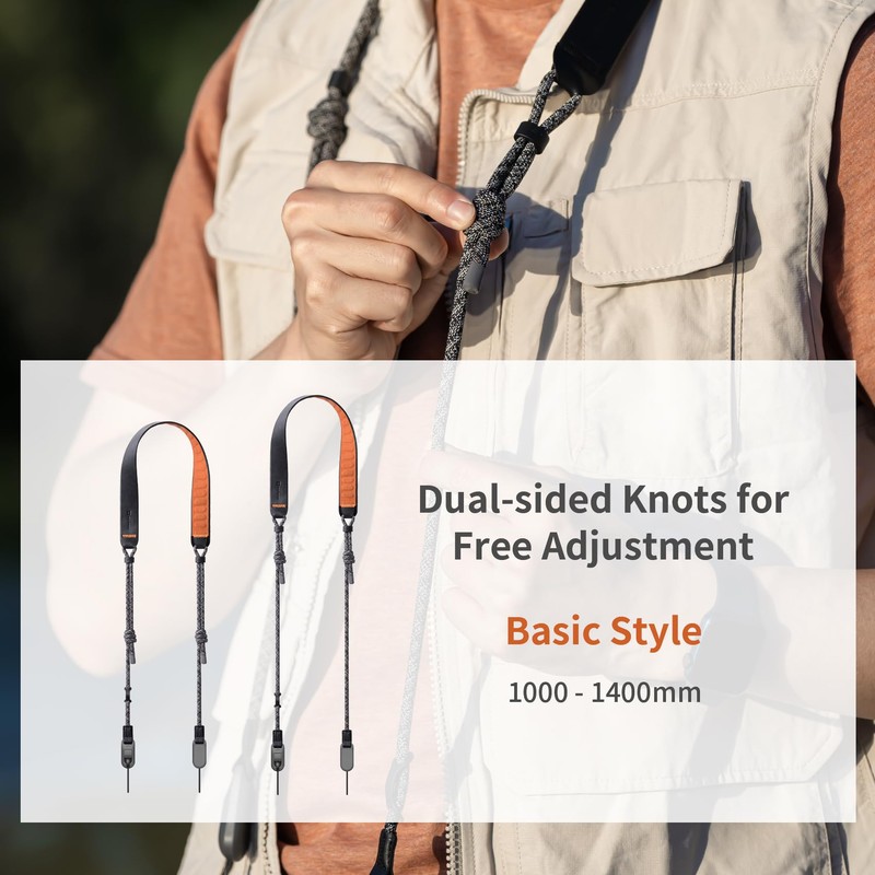 - Adjustable length: 48-strand braided rope, durable, comfortable and stylish practical. Double-sided length adjustment for easy strap length changes. Minimum length 100 cm, maximum length 140 cm and width 3 cm. Better for users of different heights. Excellent design: single-sided TPU hanging loop, can be easily converted into a carrying sling even after disassembling the camera, saving storage time.