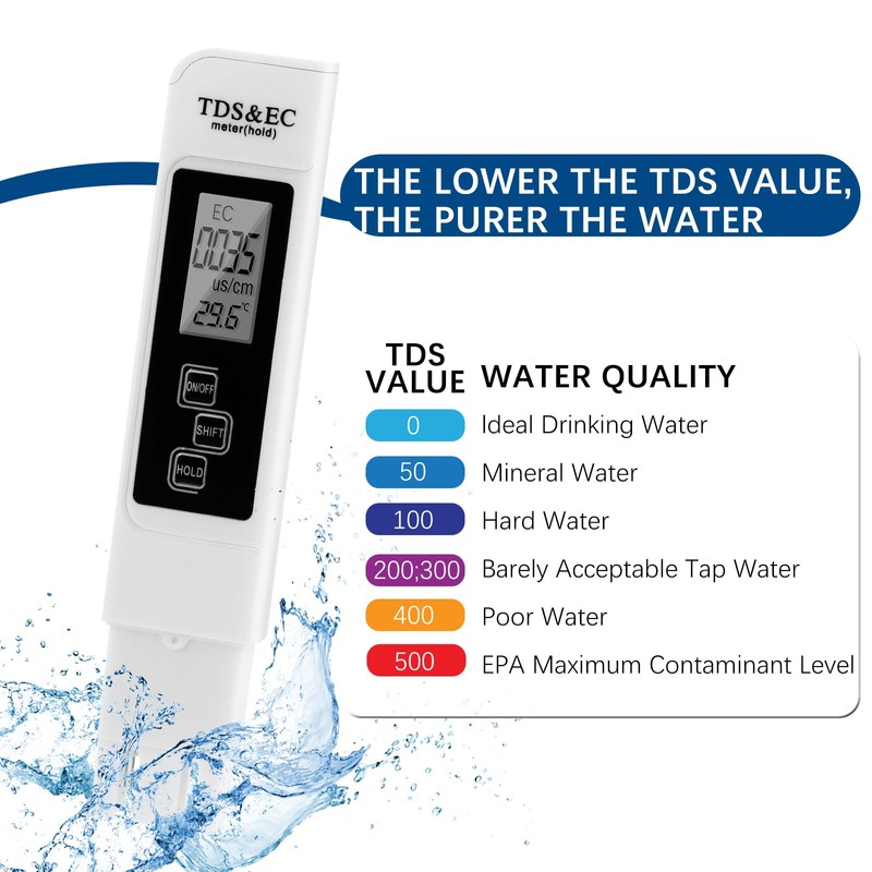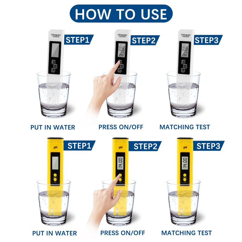 - 4 in 1 Water Test Kit: includes pH meter and 3-in-1 TDS meter. Display important water parameters such as pH, TDS, electrical conductivity (EC) and temperature in just 5 seconds.