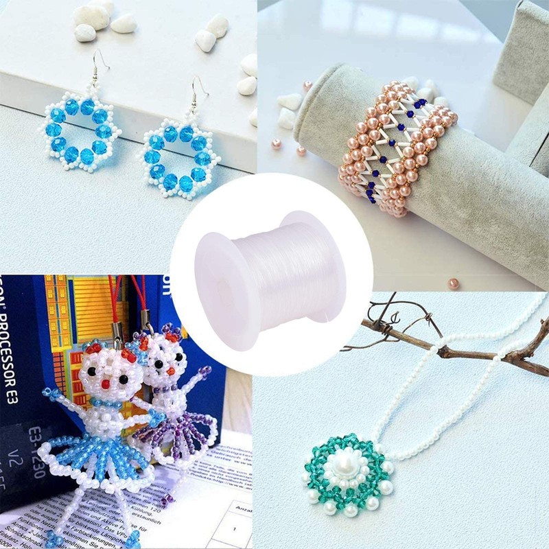 PH PandaHall 0.45mm Crystal Beading Cords Clear Fishing Line Invisible Nylon Thread Jewelry String Wire Cord String for Party Christmas Decor Seed Beads Jewelry Bracelet Making 30 Yards