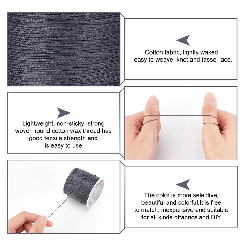 - Gray Waxed Cord: package includes 1 roll of round waxed beading cords in gray, 0.5mm in diameter, 115.92 yards(106m) in length. Classic and well-matched color, excellent texture and comfortable handling, perfect for jewelry making, beading, crafting, sewing and repairing.