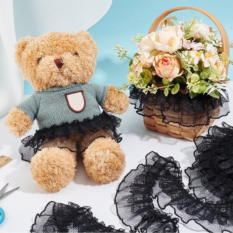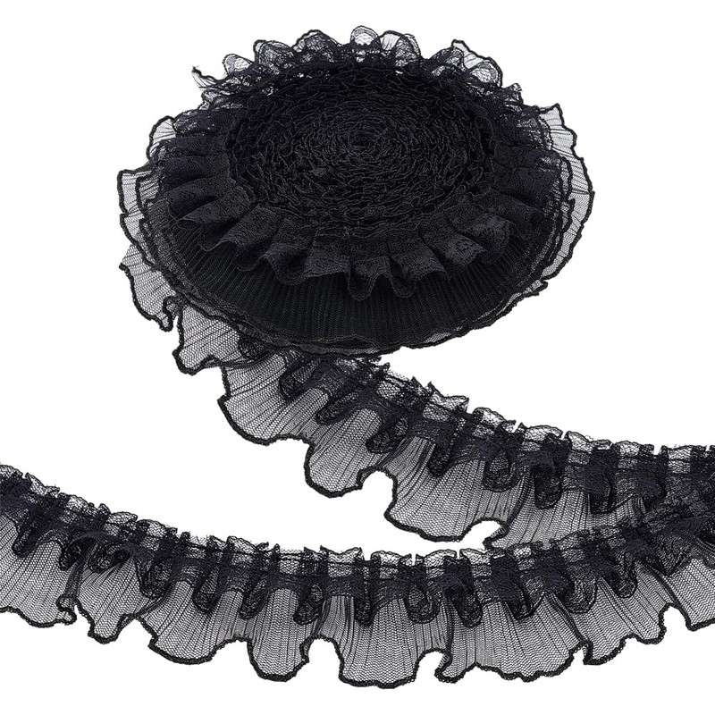 PH PandaHall 10 Yards Black Ruffle Lace Ribbon Trim Pleated Lace Fabric Trim Ruffle Trim 6 cm Wide Double Layer Ruffled for Crafts Sewing Embellishments