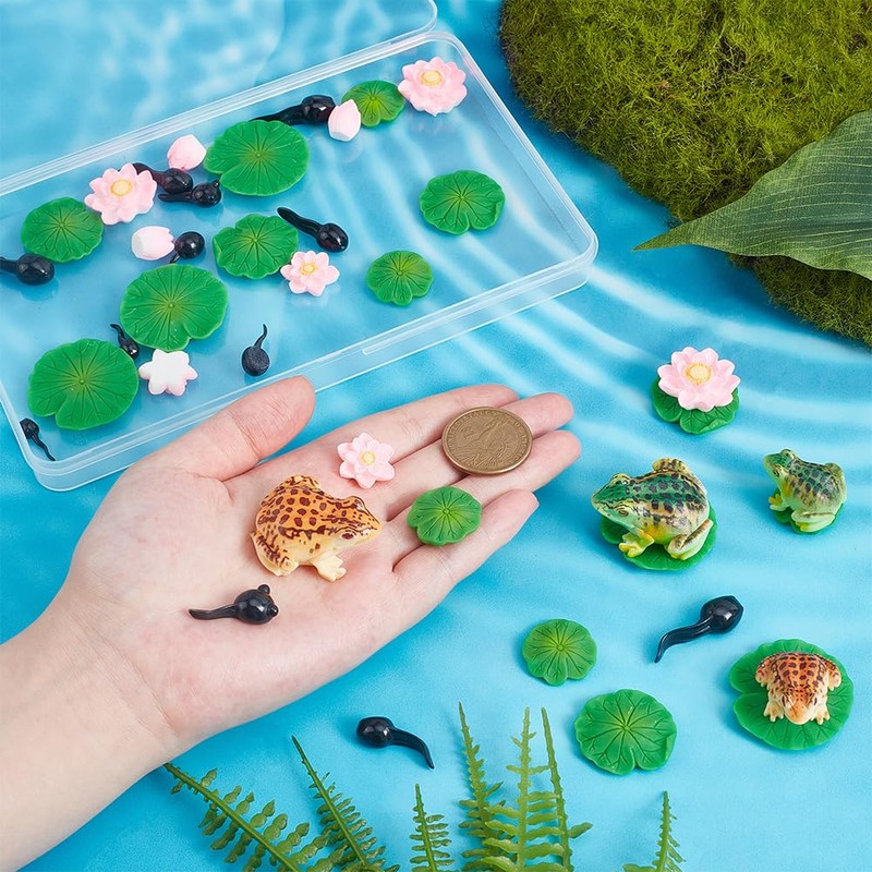 PH PandaHall 11 Styles Fairy Garden Accessories Mini Resin Frog 41pcs Miniature Lotus Figurines Tiny Tadpole Figurine Plants Lily Pad Statue Ornaments for Garden Bonsai Landscape Aquarium Crafts
