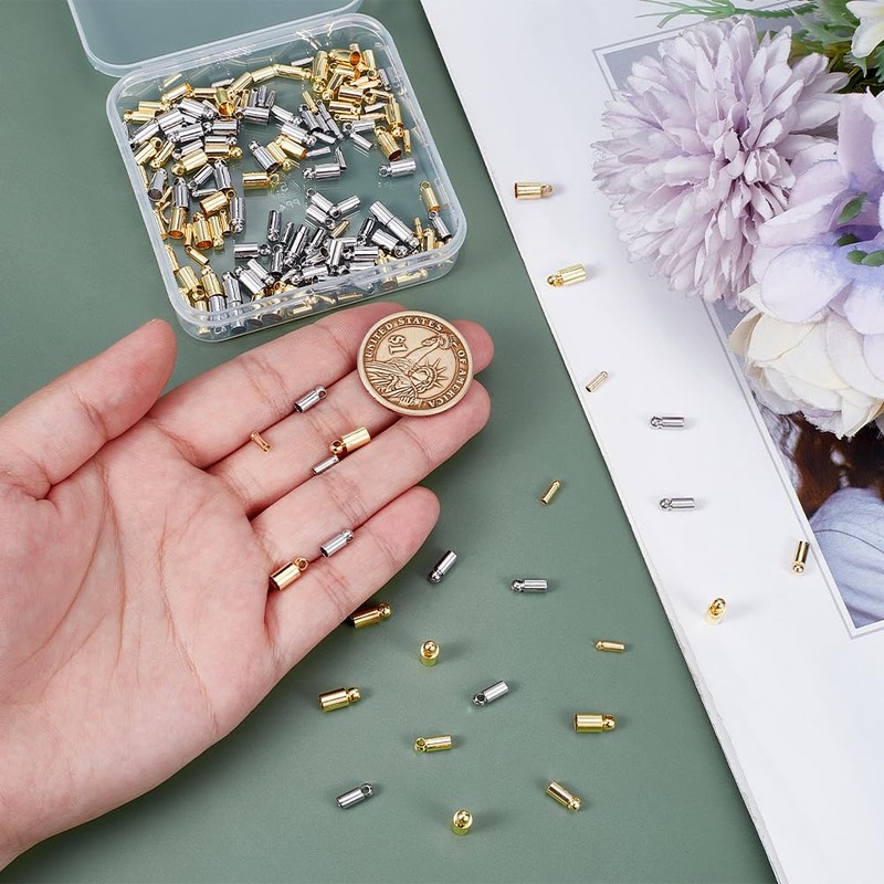 - Size: The cord end caps size is about 6-9x2-4mm, inner diameter size is about 1.5-4mm. This size of cap end charms is very suitable for making jewelry designs, and the hole size is also suitable for various types of ropes
