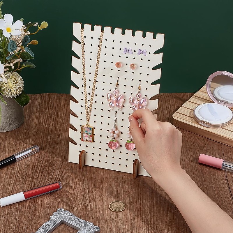 - Fit for DIY: This pegboard display stand is made of wood, smooth to touch. And the surface is blank with no patterns, allowing you to design and paint on it according to your preferences, creating a unique earring display stand.