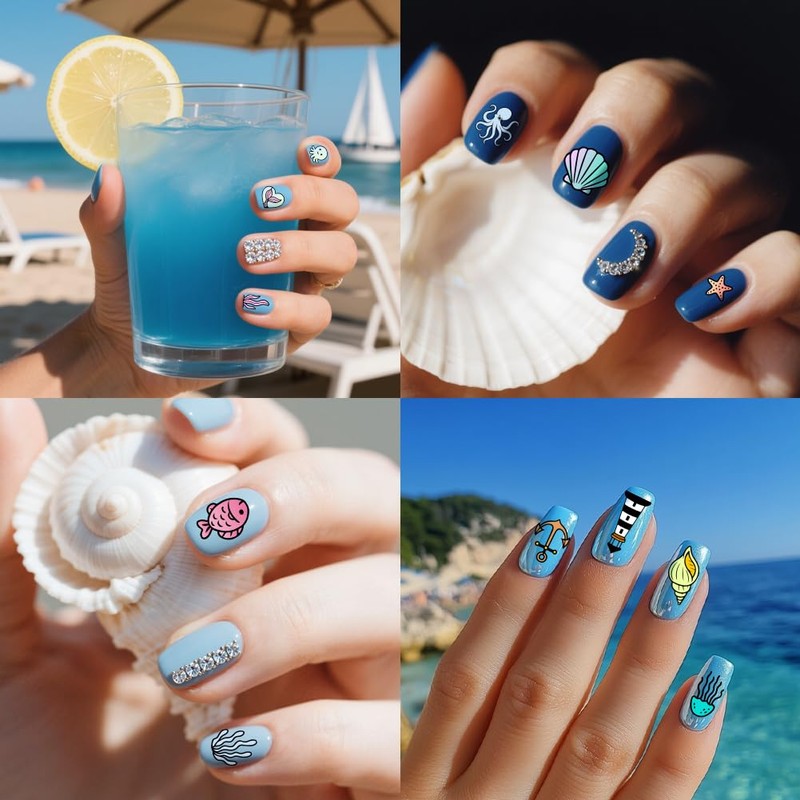 - Summer theme template: these ocean theme nail art templates contain many patterns, such as whales, sharks, sea lions, octopus, seahorse, fish, seagrass, shells, turtles and some line patterns, perfect for adding summer freshness to the nail design
