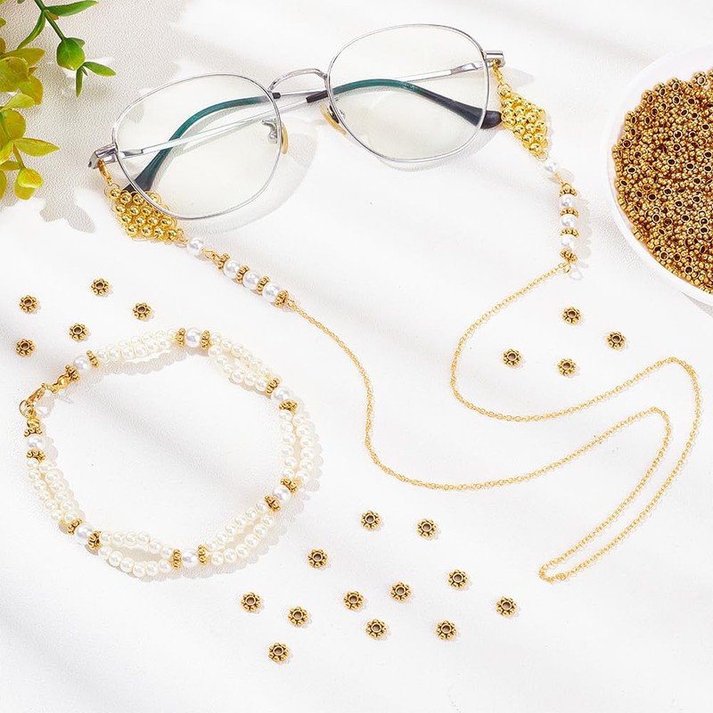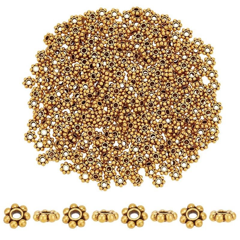 • Daisy flowers design: flower shape in antique gold style, elegant and delicate, can attract the attention of others and serve as special accent beads in your jewellery designs. They are also a great help when mixing small bead spacers with beads with large holes.