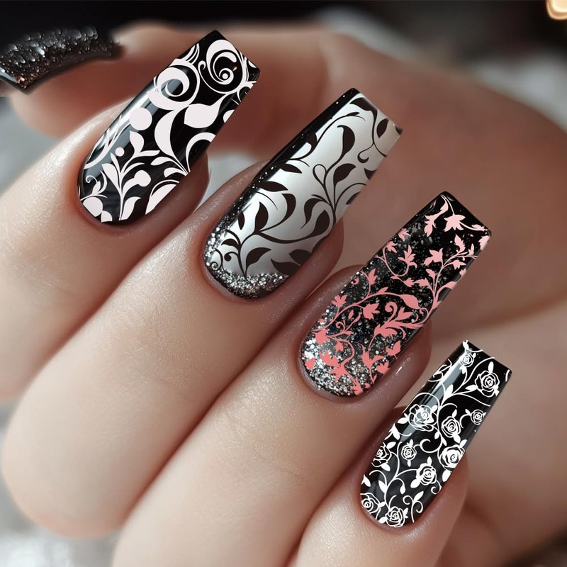 - Flower Nail Stamping Plates: Includes 36 nail art patterns, such as curly and twist leaves and flowers, as well as geometric shapes such as diamonds and squares, etc. Natural elements and geometric elements are intertwined to increase the layering and richness of the patterns