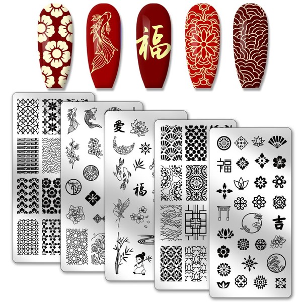 - Chinese Style Plates: 5pcs nail plates with a variety of patterns, including lucky words, background, texture, fan, goldfish and other patterns. Each pattern contains a profound cultural heritage, allowing you to feel the unique charm of Chinese culture while doing your manicure.