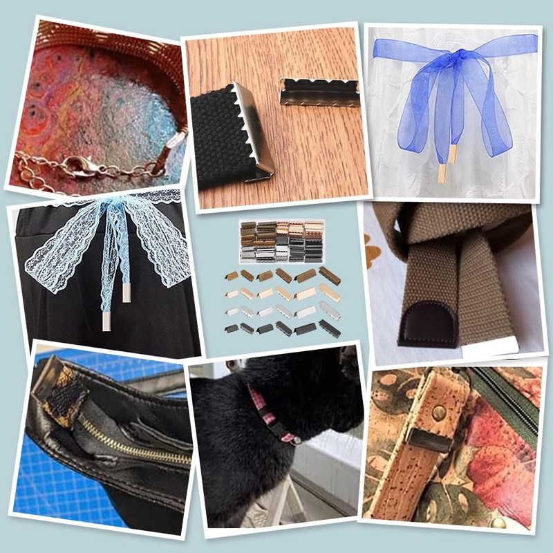 - Package includes: you will receive 72 pieces of 12 style iron and brass band ends. Enough quantity to meet your different DIY jewellery needs. Metal tips wrap raw edges of the webbing, strapping, ribbon and fabric when making your own easy to sew belts.