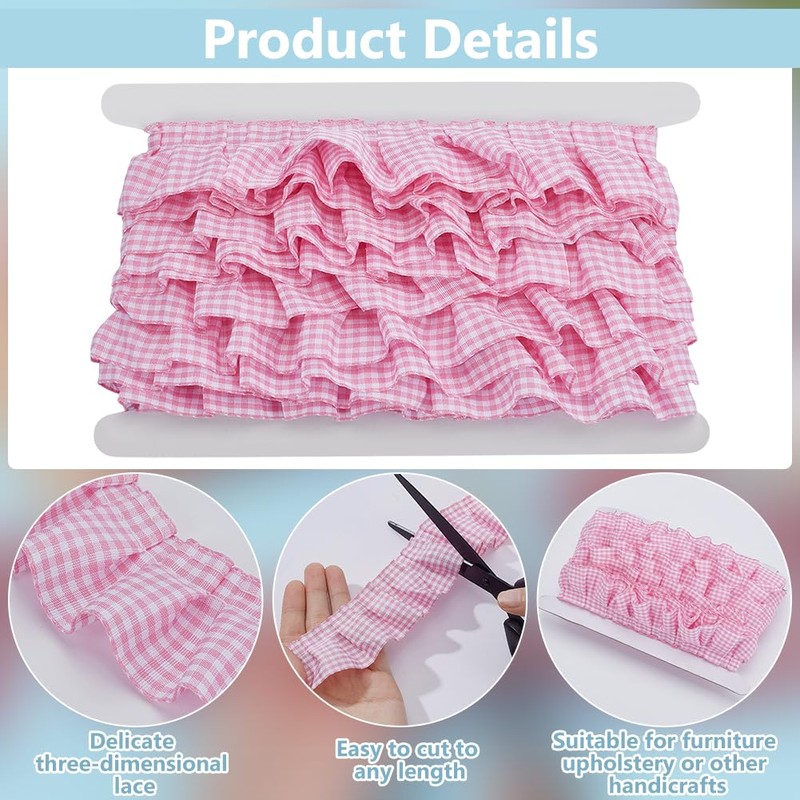 - Material: this checked ruffle trim is made of polyester, not easy to fade or deform, can keep its beautiful appearance for a long time, easy to clean, even after many uses and washing processes, it can still remain in good condition