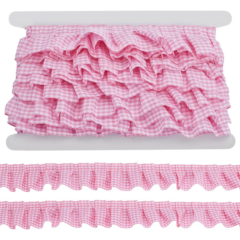PH PandaHall 9 m Gingham Ruffle Trim Pink Pleated Tape 40 mm Ruffle Ribbon Trim Wavy Lace Edge Trim for Christmas DIY Craft Sewing Dress Clothing Applique