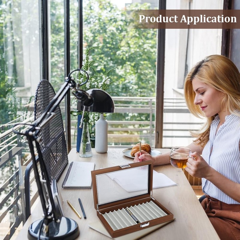 - Premium Material: Made from sturdy wood with a clear glass window and lined with soft gray velvet, this case protects pens from scratches and dust while showcasing them elegantly. The secure lock clasp ensures your valuable collection stays safe.