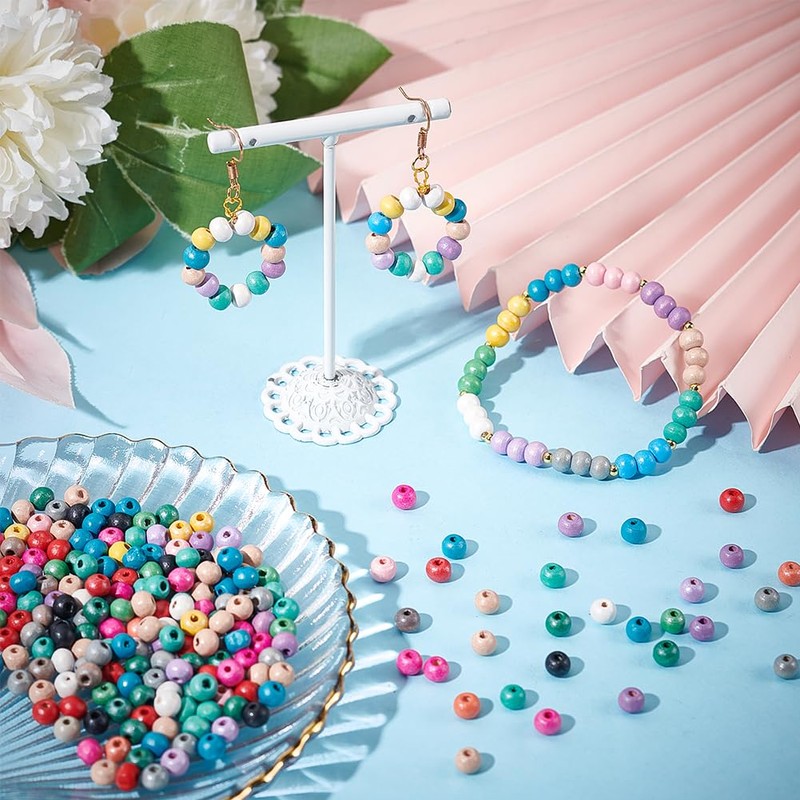 PH PandaHall Mixed Wood Beads Colorful Round Beads Jewelry Necklace DIY Parts Dyed Mixed Colors 5-6x6-7mm
