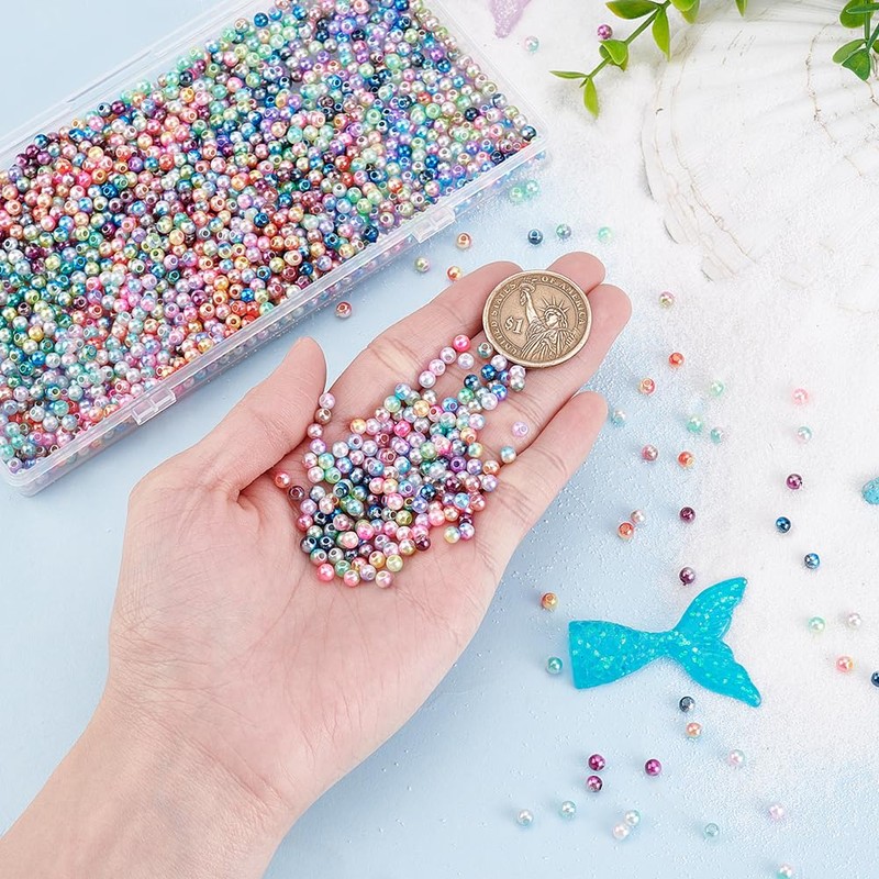 PH PandaHall Pack of 2080 Beads in 16 Colours Gradient Mermaid Beads Rainbow Imitation Beads for Bracelets Necklaces Earrings Vase Filler 4 x 3.5 mm