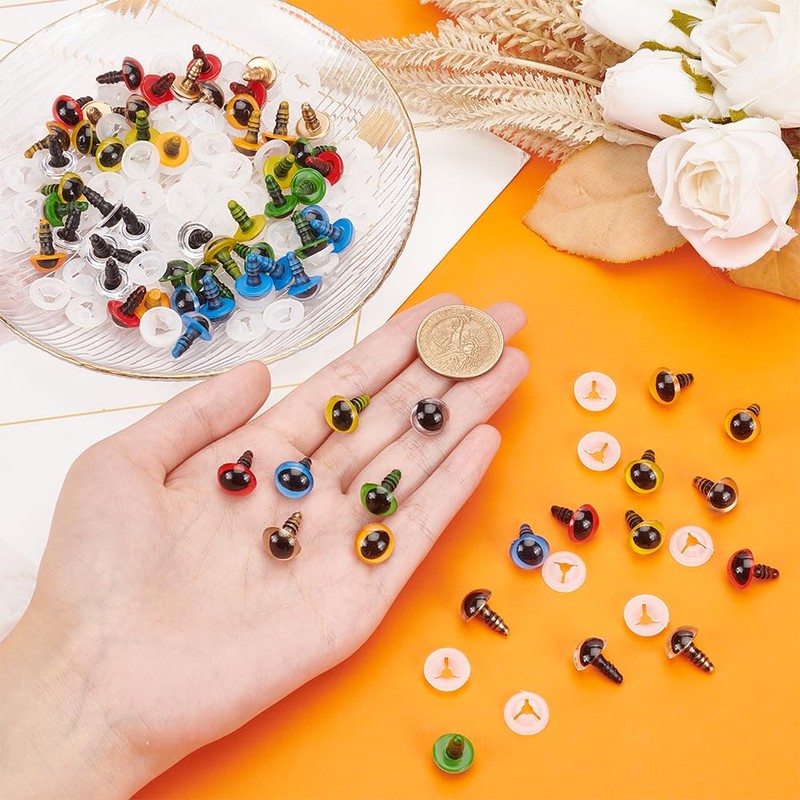 - Easy to Use These safety eyes are equipped with eyelashes and eye washer, pass plastic safety eyes through plastic discs, then they can be firmly connected to these washers, which can prevent the eyes from falling off.