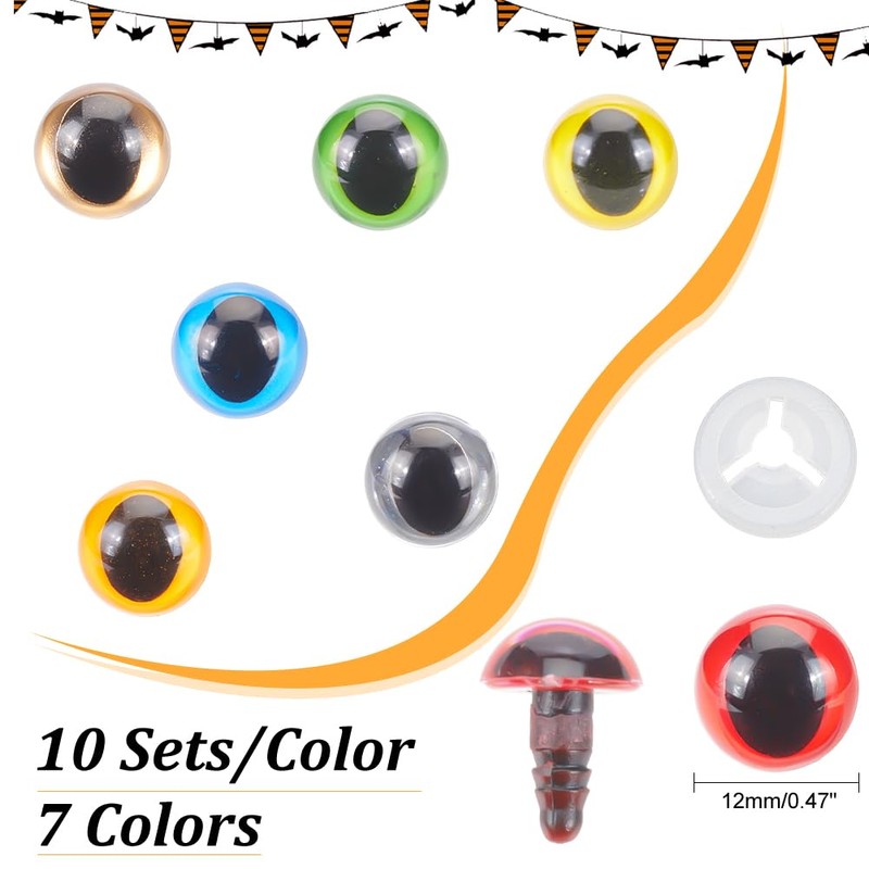 PH PandaHall Pack of 70 Crochet Eyes 12 mm Safety Eyes 7 Colours Cat Eyes Craft Eyes Made of Resin Amigurumi Eyes with Washers for Dolls Plush Toys Crochet Teddy Doll Making
