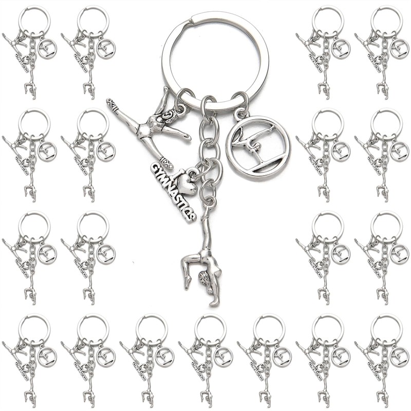 PHAETON 20PCS Gymnastics Keychain Athletes Gift Gymnastics Team Gifts Gymnasts Gift Coach Gift Gymnast Class Team Gift, Silver, 3.4''