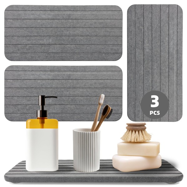 - HIGH-QUALITY DIATOMITE MATERIAL: Each set includes 3 trays, with each tray measuring 8.3'' x 3.9''. Made from natural Diatomite, this material boasts a unique porous structure that quickly absorbs moisture, keeping surfaces dry and preventing mold or odors caused by humid environments.