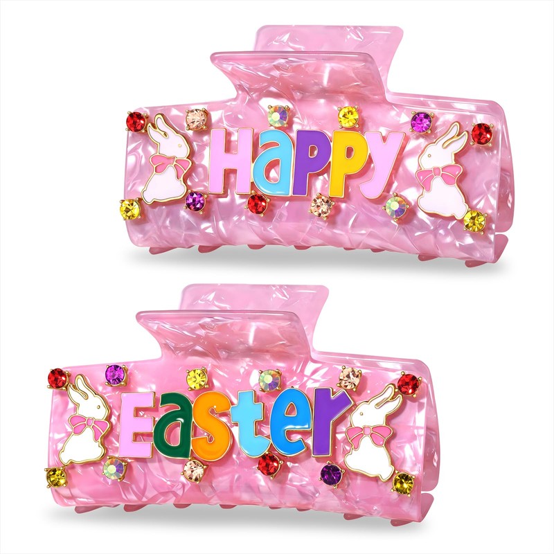 - Elevate your Easter celebrations with our Easter Hair Claws for Women—a charming blend of Spring holiday spirit and everyday elegance! Each hair claw clip is meticulously designed with iconic Easter Bunny, Carrot, and letter "HAPPY EASTER" accents, adorned with vibrant crystals that sparkle like springtime sunshine. These Easter Bunny Hair Claw Clips aren’t just hair accessories; they’re a joyful declaration of your love for the season.