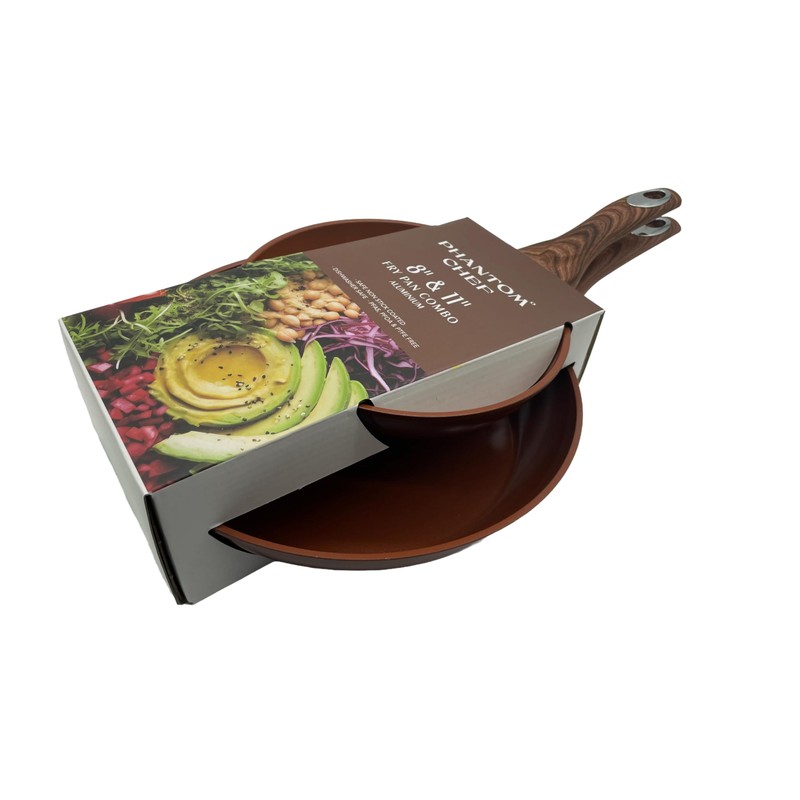 Phantom Chef 8” & 11" Frying Pan Set | Pure Aluminum Nonstick Frying Pan Set With Ceramic Coating | Soft Touch Stay Cool Handle | PTFE PFOA Lead and Cadmium Free Fry Pan | 2 Piece (Cinnamon)