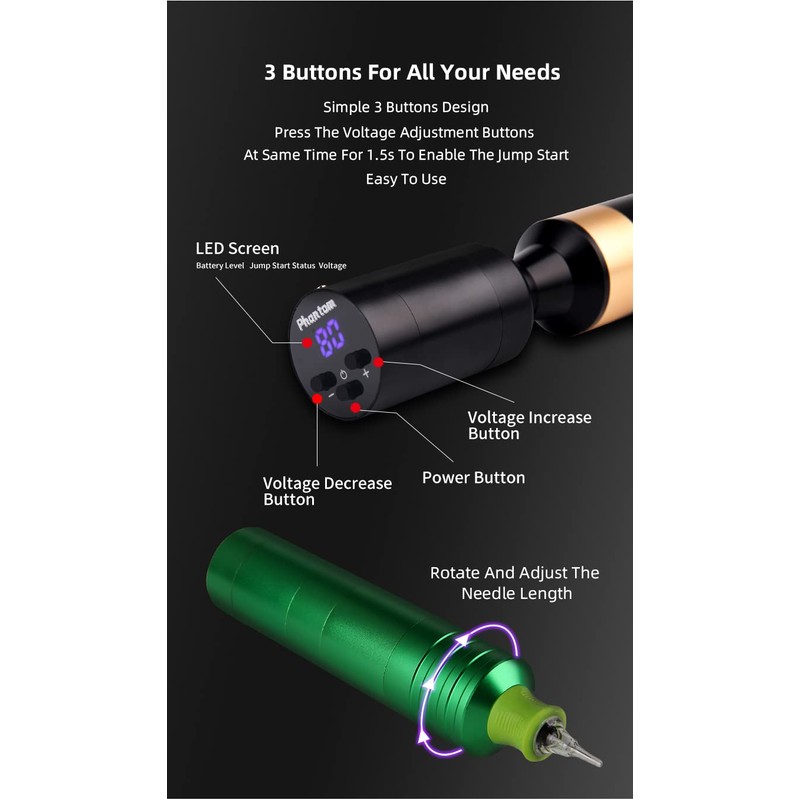 Phantom Rechargeable Rotary Tattoo Pen (Black)