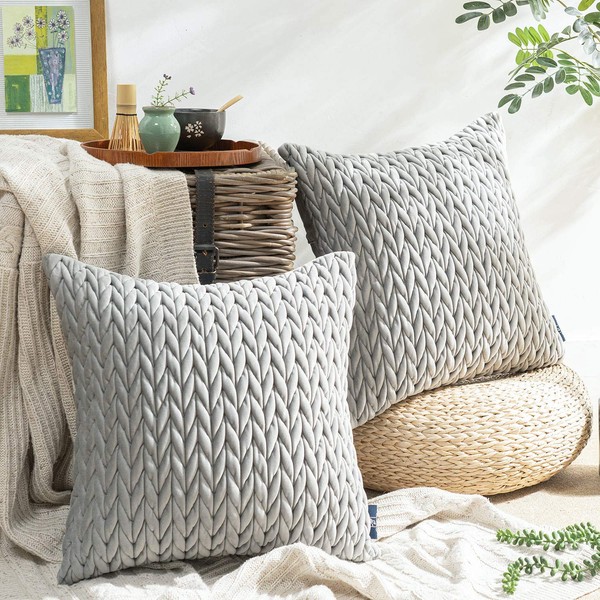Phantoscope クッションカバー ベルベットプリーツ 北欧風 2枚 おしゃれ 弾力性あり キルティング ソファ背当て 部屋飾り 抱き枕 無地2WAY グレー 45×45cm