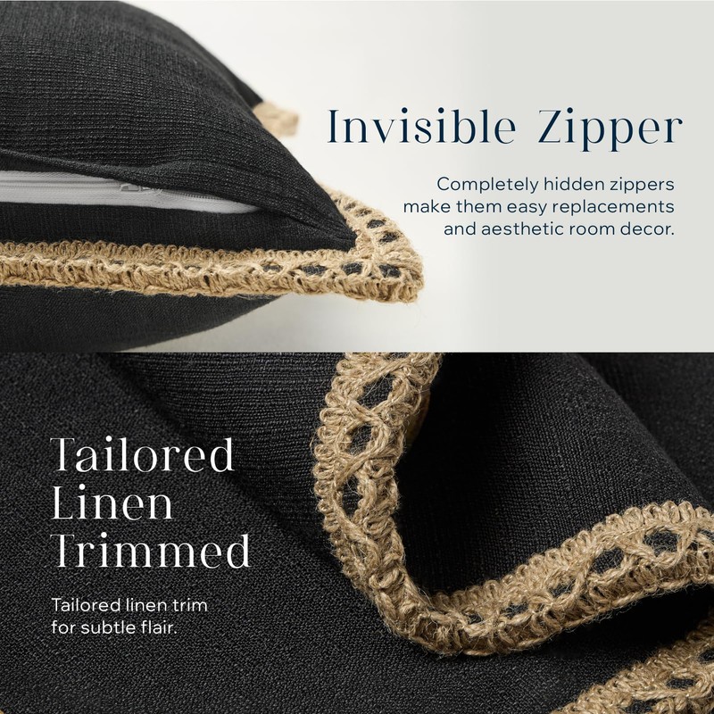 Phantoscope Farmhouse Solid Throw Decorative Pillow Cover Burlap Linen Trimmed Tailored Edges Outdoor Pillow Black 1 Pack 18 x 18 inches, 45 x 45 cm