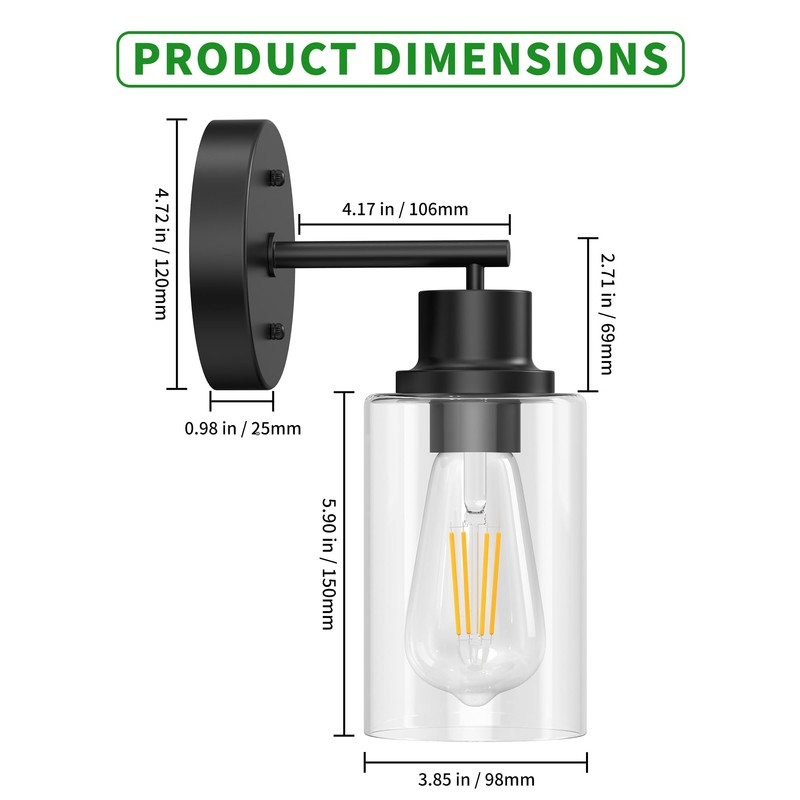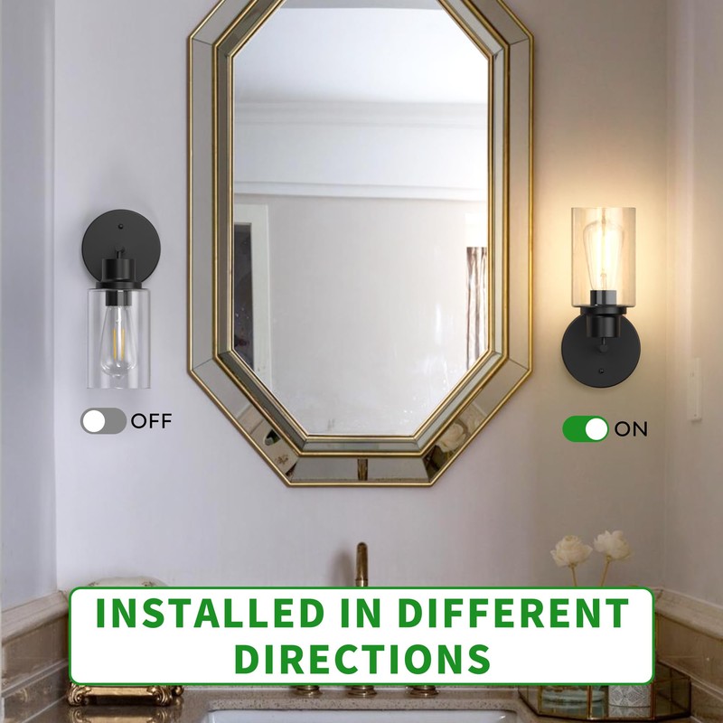 - 【Modern Design with Clear Glass Shade】Each light features a sleek black finish paired with a transparent glass shade—blending modern and industrial elements. The minimalist silhouette fits beautifully in bathrooms, bedrooms, and living areas, offering warm ambient lighting.