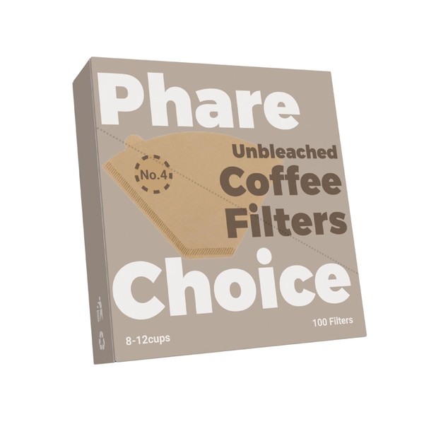 Phare Choice #4 Cone Coffee Filter, 8-12 Cup, Natural Unbleached Paper, No Blowout, 100 Count, Compostable and Compatible with Pour Over and Drip Coffee Maker