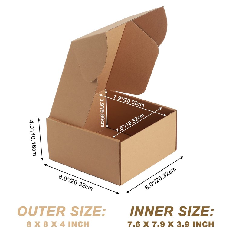 Package Include: 25 Pack 8x8x4 inch Brown Mailer Boxes
