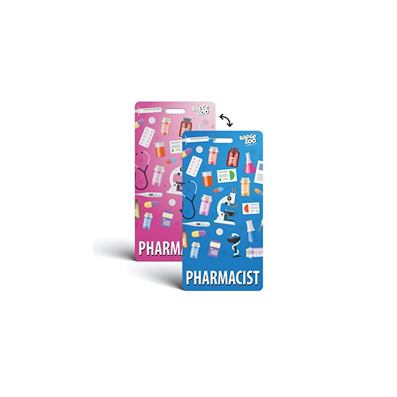 Pharmacist Badge Buddy Blue/Pink Vertical Heavy Duty with Medical Themed Icons Identification Card - by BadgeZoo