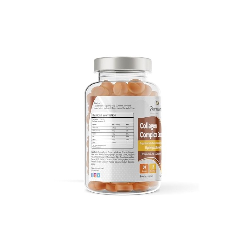 Pharmanostix Collagen Complex Gummies - Natural Pineapple Flavour - Hydrolysed Bovine Collagen Supported with Biotin, Vitamin C & Selenium - for Healthy Skin & Hair for Men & Women