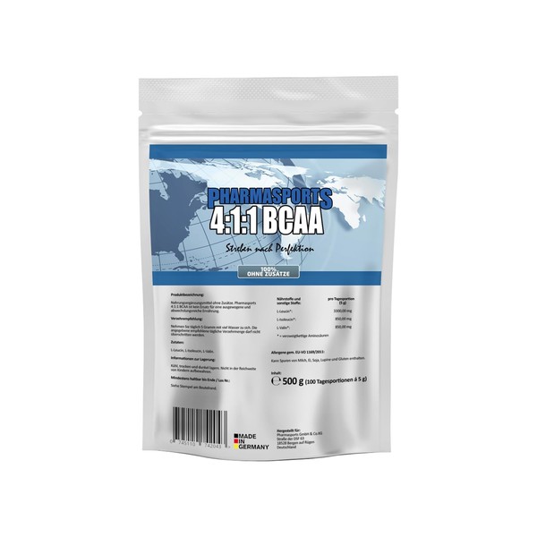 - Excellent value for money: each can contains 500 g of pure BCAA powder with a 4:1:1 ratio of the 3 amino acids L-leucine, L-isoleucine and L-valine. 100 servings of 5g each.