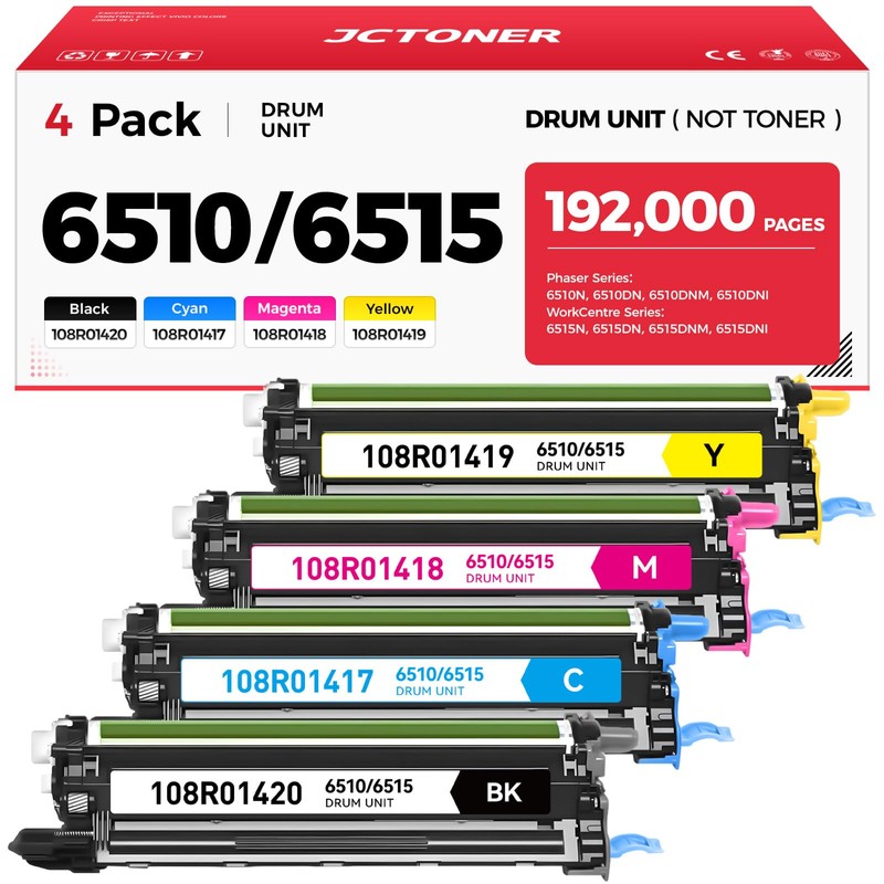 - Package Contents: Total 4 pack 6510/6515 Drum Unit, (1*Black 108R01420 Drum, 1*Cyan 108R01417 Drum, 1*Magenta 108R01418 Drum, 1*Yellow 108R01419 Drum).