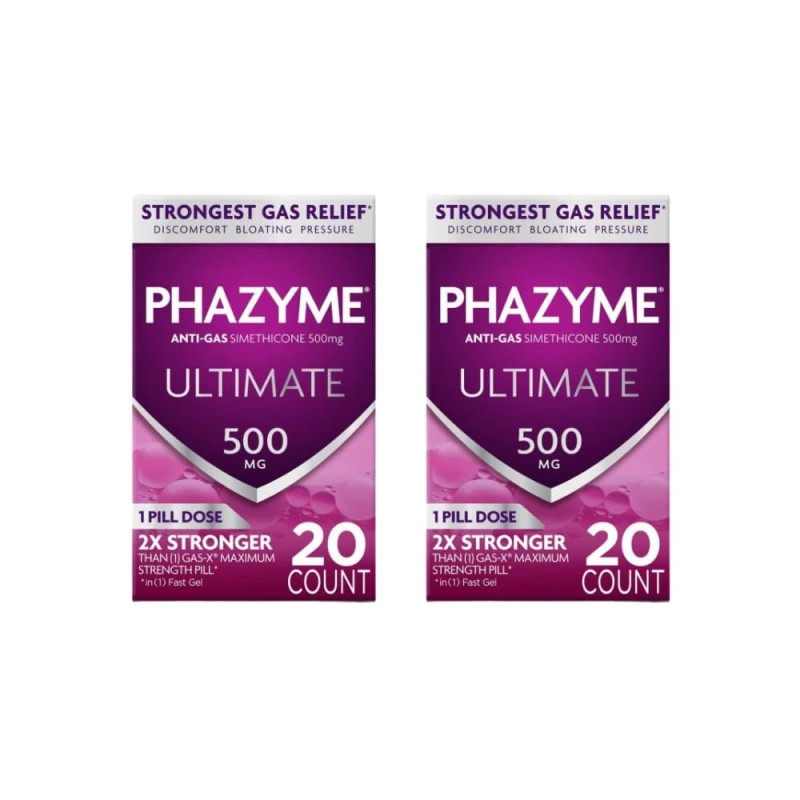 Phazyme Ultimate Gas Relief 500 Mg Simethicone Fast Gel 20 Count Pack Of 2