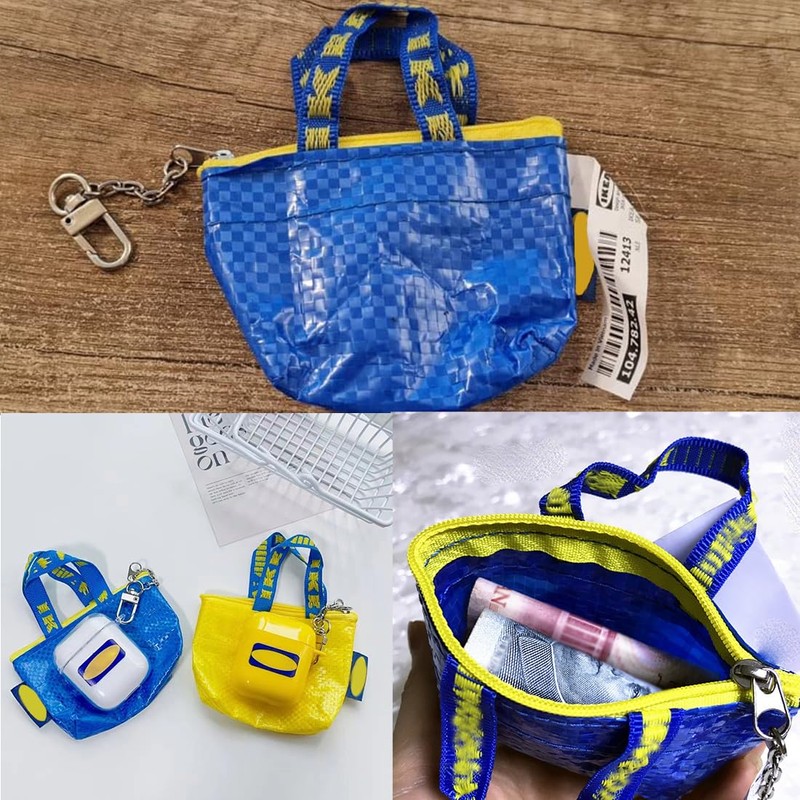 - PACKAGING Contains two delicate mini bags, one yellow and one blue.