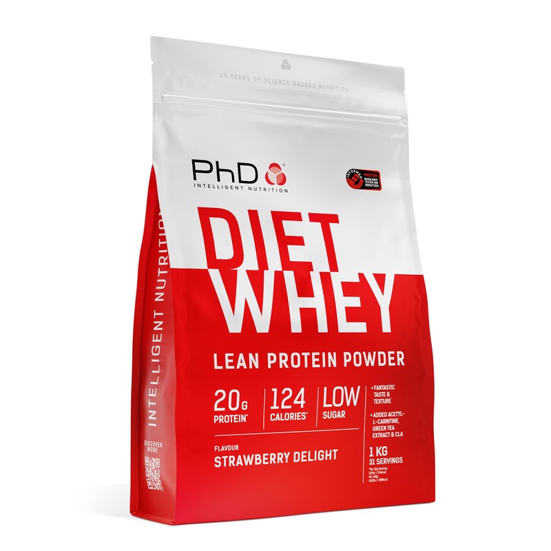 Product DescriptionPhD Diet Whey is designed for anyone looking to maintain or build lean muscle mass during a calorie-controlled diet. With 20g of high-quality, Informed Protein Certified protein per serving, it supports muscle growth and recovery while helping to keep you fuller for longer.Protein is essential when calories are reduced as it supports the body's ability to preserve muscle tissue. It also requires more energy to digest than carbohydrates or fats, making it a helpful nutrient when managing weight. Diet Whey provides a macro-friendly, low-calorie option with just 125 kcals and less than 5g of carbs per serving C ideal for those seeking lean muscle gains without the extra calories.With improved taste and texture, Diet Whey protein powder includes active compounds such as CLA, L-Carnitine, green tea extract and flaxseed, which are commonly used to support fat metabolism and energy levels during training.PhD Diet Whey is suitable for both men and women and fits easily into a busy lifestyle. It's perfect as a post-workout shake, a protein-rich snack between meals, or a convenient way to increase daily protein intake.Now Informed Protein Certified, each serving is tested for label accuracy and quality, giving you full confidence in what you're fueling your body with. Mix one scoop (32g) with 200 ml of cold water, shake, and enjoy a smooth, great-tasting drink.IngredientsHigh Protein Powder Mix. Food Supplement with sugar & sweetener. PhD Premium Protein Blend [Whey Protein Concentrate (MILK), MILK Protein Concentrate (of which 80% is Micellar Casein), SOYA Protein Isolate], Waxy BARLEY Flour, Golden Brown Flaxseed Powder, Flavouring, Stabilisers (Acacia Gum, Guar Gum, Xanthan Gum), Conjugated Linoleic Acid Powder [Safflower Oil (Rich in Linoleic Acid), MILK Protein, Emulsifier (SOYA Lecithin), Vitamin E], Acetyl-L-Carnitine, Acid (Citric Acid), Natural Colour (Beetroot Red), Green Tea Extract, Sodium Chloride, Sweetener (Sucralose). For allergens, including cereals containing GLUTEN, see ingredients in bold. May contain Egg. Do not exceed the daily dose of 3 servings. Food supplements should not be used as a substitute for a varied diet. Store in a cool dry place. Store out of reach of children. This product is suitable for vegetarians.DirectionsSee pack for detailsSafety WarningFor allergens see ingredients in bold. May also contain nuts.Legal DisclaimerDietary supplements are not a substitute for a balanced and diversified diet.Box Contains1 x PhD Diet Whey 1 kg Stawberry DelightManufacturer Contact InformationSiS (Science in Sport) Limited, Unit 8A, Frontier Park, Blackburn BB1 3AL UK Science in Sport S.R.L. via Michelangelo Buonarroti, 39 C 20145 Milan, ITALIA