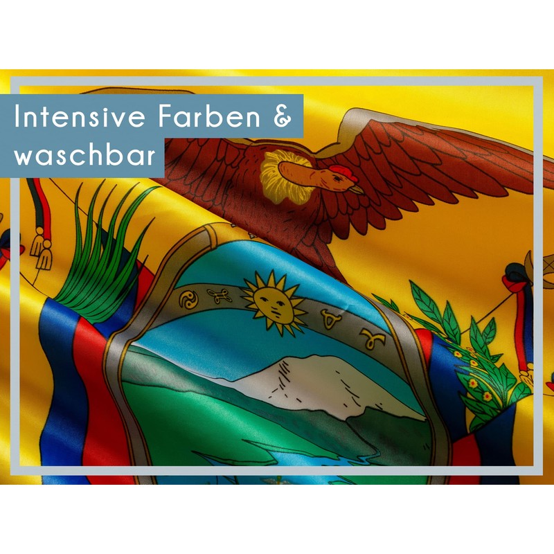 • Show flag: traditional national flag of Ecuador made from wind and weatherproof material – thanks to the integrated eyelets easy to attach to the flagpole or balcony