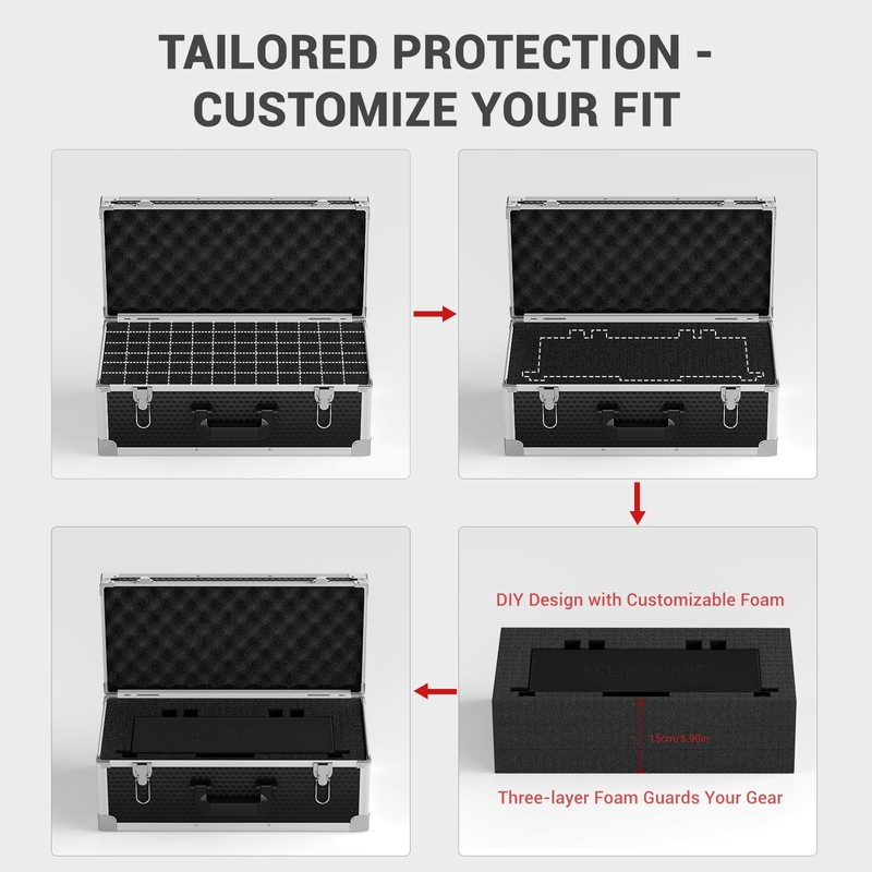 - ERGONOMIC HANDLE & SECURE LOCKING: The hard case with foam features a sturdy ergonomic handle for comfortable transportation and is equipped with secure aluminum alloy clasps to ensure a tight seal. Rest easy knowing your equipment is safe and ready for any event.