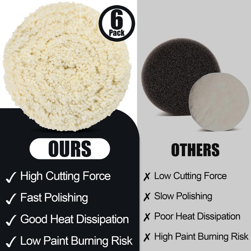 - 【Superior Heat Dissipation】Natural loft and open structure of wool promote excellent airflow, enabling effective heat dissipation during high-speed polishing. This critical characteristic significantly reduces the risk of burning through automotive paint, making it a safer choice for prolonged, heavy-cut polishing on vehicle surfaces